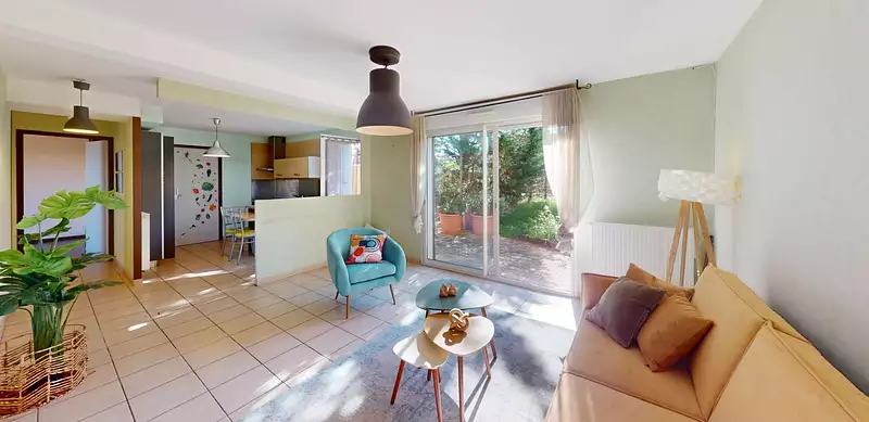 Le vaste séjour, ouvert sur une cuisine conviviale, devient le cœur de la maison : un lieu idéal pour partager des instants privilégiés en famille ou entre amis.