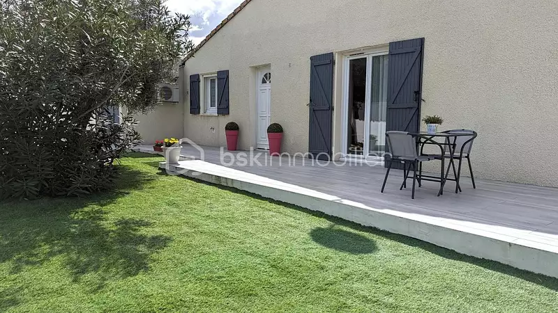 Le terrain plat de plus de 300 m² est piscinable et nécessite aujourd'hui peu d'entretien. Il peut être revisité selon vos envies. La maison bénéficie d'une grande terrasse et d'un trottoir carrelé encadrant l'ensemble de la maison pour plus de confort.