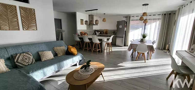 Vous allez apprécier la grande pièce de vie très lumineuse de plus de 50 m² ouvrant sur la terrasse, avec un accès direct sur la piscine et le jardin.