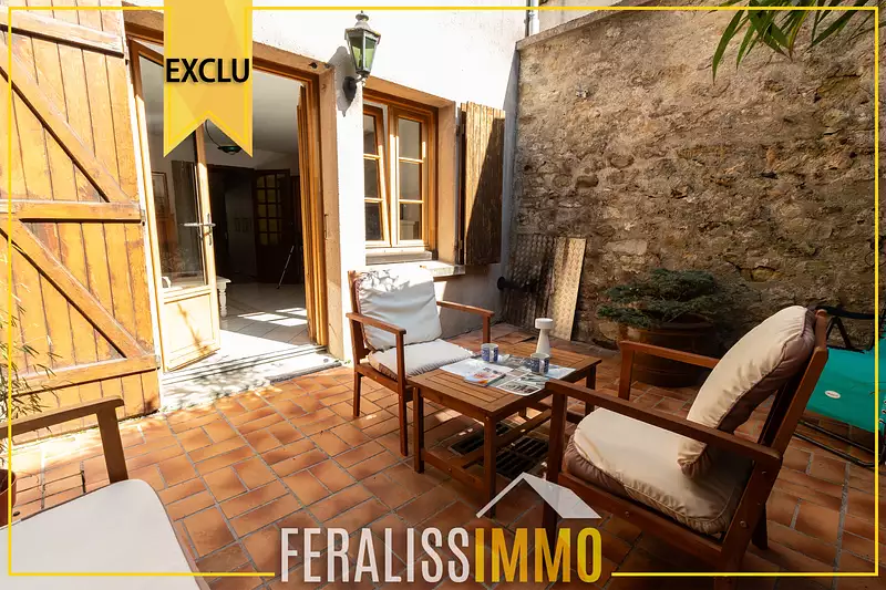 Jolie maison en pierre accolée d'un côté avec cour avant et arrière, entièrement rénovée, vous offrant, au rez-de-chaussée: une entrée par véranda, un bureau voûté, un chaleureux salon avec poêle à pellets donnant sur cour. Au 1er étage : un dégagement avec placard aménagé, une spacieuse cuisine séparée aménagée et équipée, avec cheminée insert, une chambre avec salle de bains, WC indépendants avec lave-mains. Au 2ème étage: un dégagement avec placard aménagé, 2 charmantes chambres mansardées, avec placard aménagé donc 1 avec salle d'eau et WC. Une cave sous le garage attenant. Chauffage individuel électrique. Classe énergie : E, Classe climat : B. Montant estimé des dépenses annuelles d'énergie pour un usage standard : entre 1800 € et 2480 € par an (prix moyens des énergies indexés en 2021, 2022 et 2023). Les informations sur les risques auxquels ce bien est exposé sont disponibles sur le site Géorisques : www.georisques.gouv.fr. Réf : 9519.