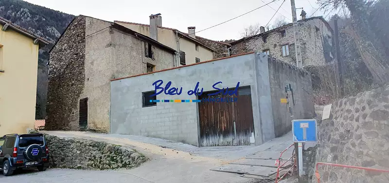 A saisir, maison de village en pierres à rénover avec grand garage (100 m2) pouvant servir d'atelier ou de grand espace de stockage, dans un petit hameau proche de Sahorre (Thorrent), dans un environnement très calme et ensoleillé.