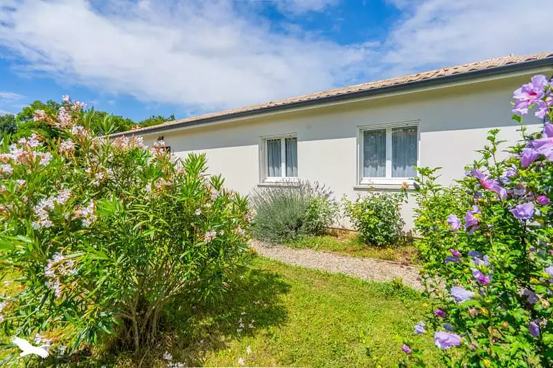 Maison de plain-pied construite en 2019 offrant spacieux séjour lumineux avec cuisine ouverte, 4 chambres, salle d'eau, wc, cellier. Chauffage par le sol, travertin, sans travaux et hors lotissement, à découvrir sans tarder. Arrêt de bus à proximité.