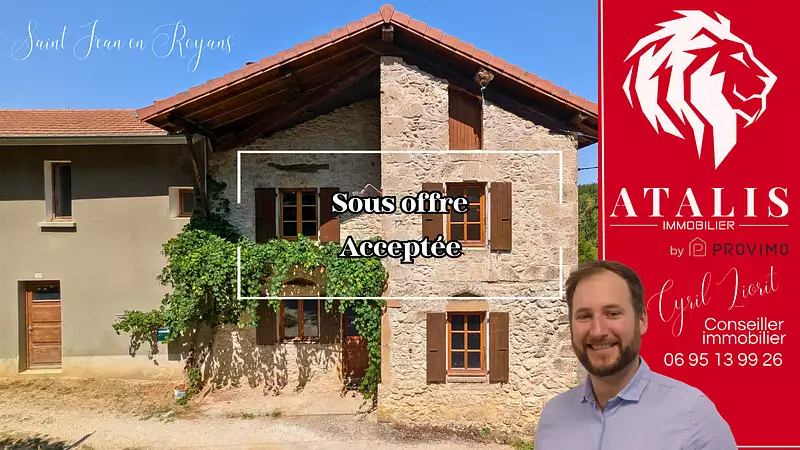 Située dans un hameau paisible au pied du Parc Naturel Régional du Vercors, cette maison mitoyenne en pierre de caractère offre 100 m2 habitables ainsi qu’un garage et atelier aménageable.