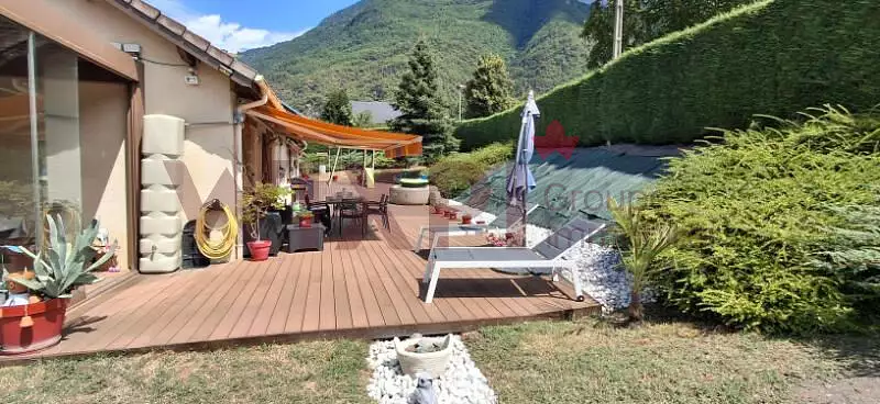 En Exclusivité sur la commune de Tours en Savoie, je vous propose, une maison de plain-pied des années 2000 de 75m² + 30m² de véranda, sur un terrain paysagé et clôturé de 1200 m² piscinable, aucun vis-à-vis, vue sur nos belles montagnes savoyardes. Elle se compose d'une cuisine équipée et ouverte sur le salon avec cheminée, avec accès à une immense terrasse. Coté nuit, 3 chambres, salle de bain et un toilette. Toutes les pièces possèdent une climatisation. Fenêtres doubles vitrages avec moustiquaires. Intérieur style chalet bois. Chaudière gaz de ville, un garage, un appentis et plusieurs places de parking, portail électrique solaire. Coin du village calme et sans circulation. Coup de coeur à voir absolument avec Sylvie Deletraz ou Fréderic Deletraz contact au 06.45.34.82.89 ou par mail Visite uniquement sur dossier bancaire validé.