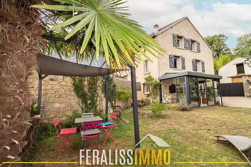 Vous serez surpris, une fois franchi le portail, de vous retrouver dans un paisible jardin arboré et fleuri, entièrement clos de murs. Pour entrer dans cette chaleureuse maison, une salle à manger-véranda chauffée vous accueillera pour vos repas en famille, on passe au salon pour la détente et on prépare le repas dans la jolie cuisine aménagée et équipée. On monte l'escalier et on découvre un couloir qui distribue une salle d'eau, une chambre parquetée. On monte au 2éme étage des enfants pour découvrir 2 chambres parquetées dont une avec un bel et lumineux espace bureau et rangement, avec une vue sur la vallée de la Seine. Le tout est chauffé au gaz. La toiture a été refaite en 2022 .Dans le beau jardin arboré et fleuri de 280 m2, nous avons également un auvent pour une voiture et vélos, une dépendance avec en dessous une cave voûtée pour les amateurs de vin ! Un abri bois. Nous sommes à 2 pas des écoles, bus, commerces, parc et bords de Seine pour de belles promenades. Et maintenant, je vous attends pour venir la visiter ! Classe énergie : D, Classe climat : D. Montant estimé des dépenses annuelles d'énergie pour un usage standard : entre 2 060 € et 2 830 € par an (prix moyens des énergies indexés sur les années 2021, 2022, 2023). Les informations sur les risques auxquels ce bien est exposé sont disponibles sur le site Géorisques : www.georisques.gouv.fr. Réf : 9851.
