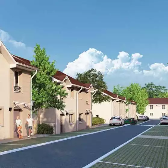 Maison mitoyenne T4 101 m2 en retrait de la rue centrale et parfaitement intégré dans son environnement existant.