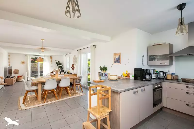 Maison familiale avec de beaux volumes, composée de 4 chambres dont la vie de plain-pied et d'un vaste séjour avec une exposition Sud-Ouest. À l'extérieur une terrasse et un jardin permettent de profiter d'un cadre paisible en bord de forêt. Ses atouts, les matériaux de qualité. Locataires en place : loyer de 890€ HC Bail 01/09/20 Proposition d'aménagement virtuel non contractuelle en dernière photo.