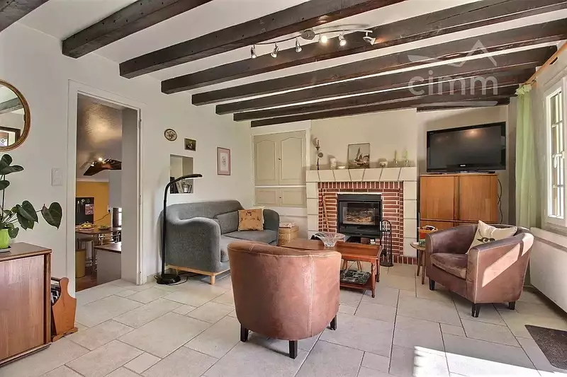 Vous disposerez d'un séjour avec espace salle à manger et un salon équipé d'une cheminée insert pour le confort d'hiver.