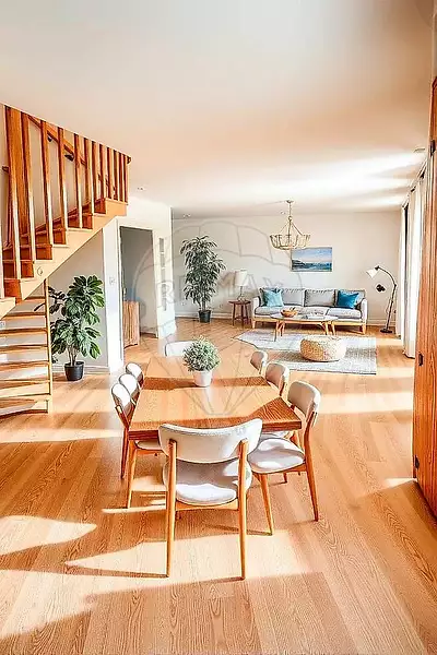 Elle offre un double séjour lumineux idéal pour les moments entre amis ou en famille, avec de grandes ouvertures laissant passer une belle lumière.