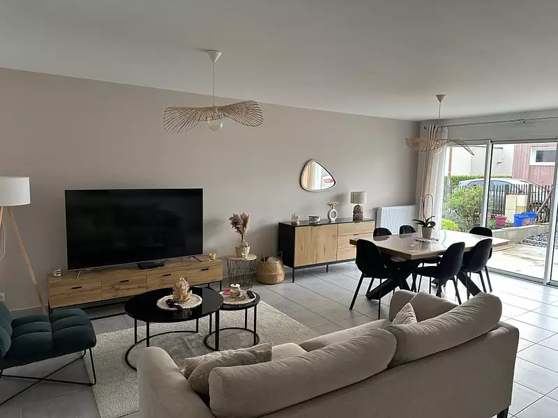 Une spacieuse pièce de vie lumineuse, avec sa cuisine aménagée et équipée ouverte sur le salon-séjour