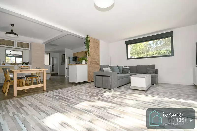 Saint Mars de Coutais, au calme. Maison de plain pied comprenant : entrée, séjour avec poêle à granules, cuisine aménagée. Trois chambres (11, 13 et 17m2), grande salle d'eau avec wc. Garage de 25m2 et deux abri de jardin. Le tout sur environ 960m2 de terrain clos. (4.67 % honoraires TTC à la charge de l'acquéreur.)