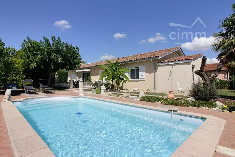 Les extérieurs ont été pensés pour le confort et la détente. Vous profiterez d’une grande terrasse carrelée, exposée plein sud avec accès direct à l’intérieur de la maison, parfaite pour vos moments de repos en plein air. La piscine au chlore, dotée d’un filtre à sable et d’un local technique, s’intègre harmonieusement au jardin. Une allée privative permet un accès aisé à la propriété et mène à un espace de stationnement. Le jardin, joliment arboré, offre un environnement verdoyant et agréable, tandis qu’une seconde terrasse, située au nord et faisant face à l’entrée principale, vient parfaire l’aménagement extérieur.