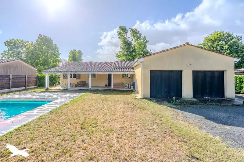 Situé dans un quartier calme et verdoyant, ce bien vous offre un bel espace de vie avec plafond cathédrale et cheminée, une cuisine équipe, un cellier et un coin nuit avec 3 chambres (équipées de placard), une salle de bains complète et un wc séparé. Un double garage complète ce bien. Jardin avec piscine et puits.