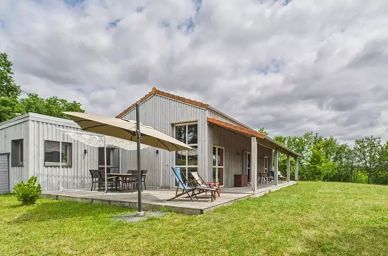 Venez découvrir cette charmante maison contemporaine de 2012 nichée au cœur de la campagne lot et garonnaise aux portes de la Dordogne. La façade en bois lui confère un style chaleureux. Vous serez séduit par les lignes épurées et le volume de la pièce à vivre, baignée de lumière naturelle. La maison offre trois chambres dont une avec salle d'eau privative. La cuisine moderne possède un accès direct a la terrasse en bois entourant l'avant de la maison. Le salon est équipé d'un poêle a bois et d'une climatisation réversible, offrant confort été comme hiver. A l'extérieur se trouve un grand jardin de 5000m² joliment paysagé avec une belle piscine. Egalement sur le terrain, un local technique et un abri de jardin.