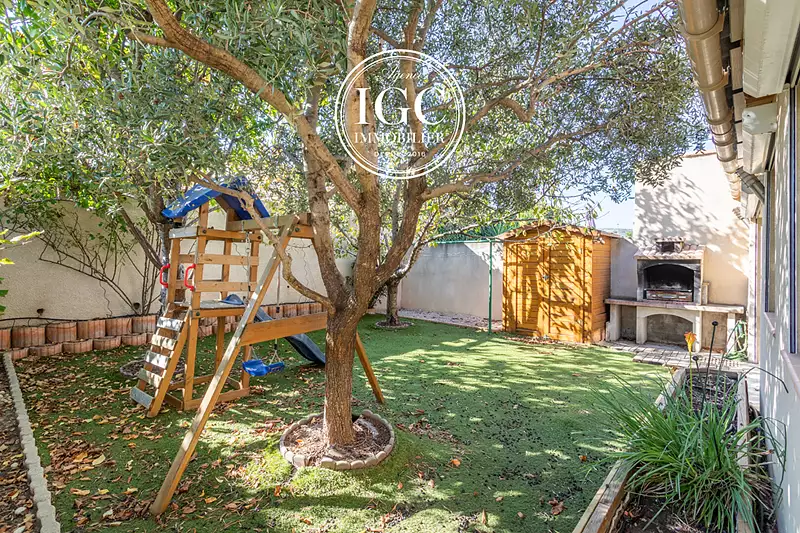 IGC IMMOBILIER vous propose en EXCLUSIVITE sur la commune de Châteauneuf-les-Martigues, dans une résidence sécurisée, découvrez cette maison T4 de 102 m² édifiée sur une parcelle de 190 m². Au rez-de-chaussée : séjour avec cuisine équipée, buanderie, WC et véranda chauffée de 26 m² avec cuisine d'été. A l'étage : 3 chambres, salle de bains et WC. Atouts : garage, 2 stationnements privatifs dont un fermé, 2 abris extérieurs, climatisation réversible (RDC) et gainable (étage), chauffe-eau thermodynamique. Un bien fonctionnel et confortable à visiter sans tarder !