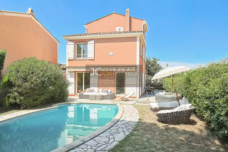 JCG IMMO est fier de vous presenter et nulle part ailleurs! À seulement quelques pas du centre-ville de Cogolin, dans un environnement résidentiel, découvrez cette maison pleine de charme, baignée de lumière, à la décoration esprit bord de mer, avec piscine, garage attenant, et une répartition des espaces idéale pour une famille.