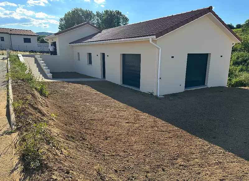 Emotion immobilier Serrières Nous sommes ravis de vous proposer cette belle maison construite en 2024, située dans un environnement calme et sécurisé à Félines, à proximité immédiate des commerces et des services. Implantée sur un terrain de 1050 m², cette maison de plain-pied de 102m² offre un cadre de vie confortable et fonctionnel. Elle comprend un vaste espace de vie (cuisine, salle à manger, séjour) lumineux avec accès direct à l'extérieur. A noter que la cuisine n'est pas encore installée, ce qui permet aux futurs acquéreurs de la concevoir entièrement selon leurs envies et leurs besoins. La partie nuit comprend trois chambres, dont une suite parentale avec dressing, ainsi qu'une salle d'eau et un cellier de 7 m² pour plus de praticité. Un garage de 25 m² vient compléter l'ensemble pour stationner votre véhicule en toute sécurité. A l'extérieur, vous bénéficierez d'un agréable jardin, idéal pour profiter des journées ensoleillées. Côté confort, la maison est équipée d'une climatisation réversible et de menuiseries en PVC double vitrage, garantissant une isolation thermique et phonique optimale. Ce bien est fait pour vous, n'hésitez plus ! DPE: En cours Pour plus de renseignements, vous pouvez nous contacter au : 06 59 34 02 40