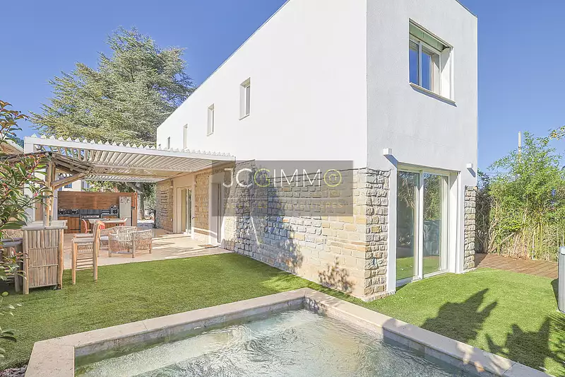 Nous vous présentons cette belle villa individuelle de 102 m2 avec 3 chambres dont 2 suites parentales, entièrement rénovée avec de belles prestations en 2023, et bâtie sur un terrain plat et entièrement clôturé de 425 m2.