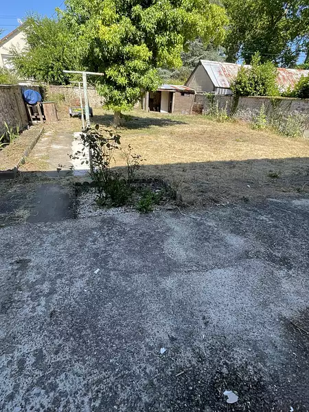Terrain clos d'environ 400m2 avec un abris de jardin et puits.