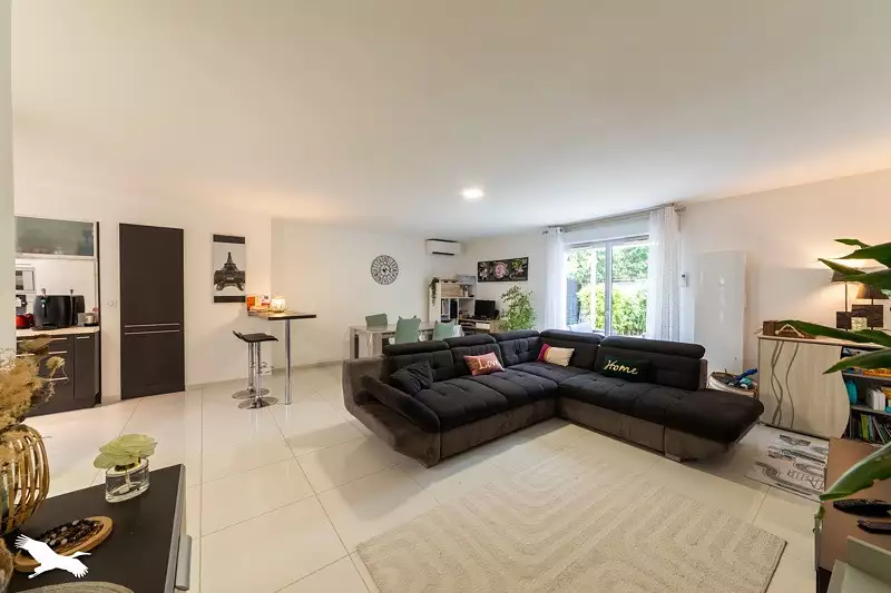 Maison de plain-pied avec jardin sans vis-à-vis clos et arboré avec espace de stationnement, située dans un environnement calme tout en offrant la proximité des commerces et écoles. Dotée d'une cuisine équipée ouvrant sur le séjour accédant à la terrasse, trois chambres, bureau, salle de bains. Un atelier compléte l'ensemble.