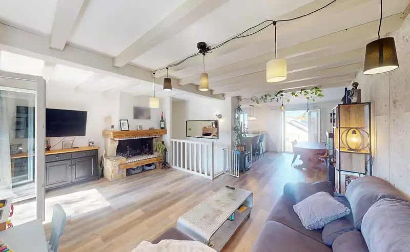 La cuisine refaite à neuf et son piano de cuisson invitent à mijoter de bons petits plats, tandis que l'insert bois promet de belles soirées cocooning au coin du feu.