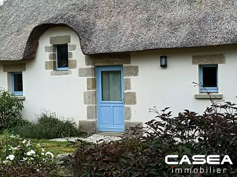 PLONEOUR LANVERN - Exclusivité - Dans un cadre verdoyant, au calme, sur un terrain clos et sans vis à vis de 1200m², venez découvrir cette charmante maison au toit de chaume offrant une vie de plain pied totale. Passer l'entrée, celle ci offre un bel espace de vie avec cuisine ouverte sur la terrasse et le jardin orienté plein sud. Dans la continuité, un dégagement vous mène vers l'espace nuit doté de deux belles chambres, chacune équipée de sa salle d'eau et de sa salle de bains. Un cellier, un carport, des rangements viennent clore la visite.