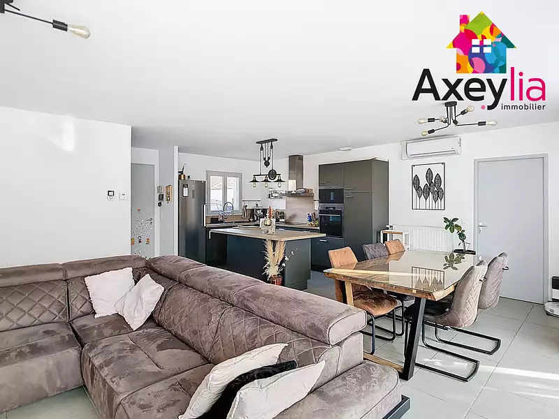 INFOS APPELEZ QUENTIN 06 25 83 66 87 - A VENDRE - ROANNE - AXEYLIA IMMOBILIER AGENCE NOUVELLE GENERATION, vous propose : Maison de plain pied de 2017, comprenant cuisine aménagée et équipée ouverte sur séjour double avec accès terrasse, 3 chambres, salle de bain-douche, WC, buanderie et garage. Prestations de qualité. Terrain d'environ 600 m2 avec cabanon de jardin.