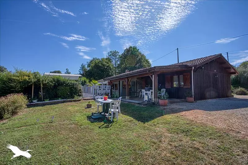Jolie maison en bois avec piscine située dans un environnemen calme et verdoyant. Elle se compose d'une grande pièce de vie avec un poêle à granulés, 3 chambres, un bureau. Un garage complète l'ensemble.