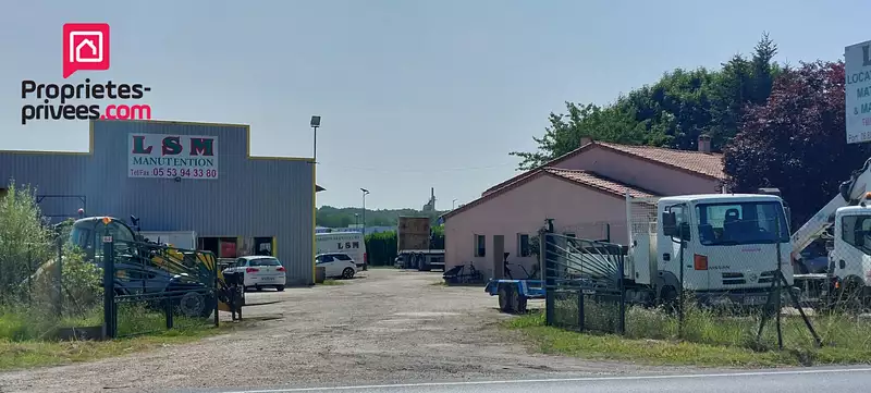 A vendre sur Samazan à 2 minutes de l'entrée d'autoroute : ensemble immobilier composé d'une maison d'habitation et 2 hangars à vocation commerciale dont l'un est actuellement loué à une entreprise sur un terrain total de 5700 m².