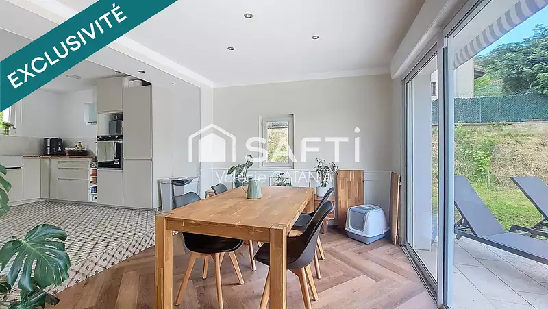 Implantée dans un environnement verdoyant, la propriété bénéficie d’une vue imprenable sur les montagnes, le tout sur un terrain clos et arboré de 1 396 m², équipé d’un portail automatique et de deux terrasses pour profiter pleinement du cadre naturel.