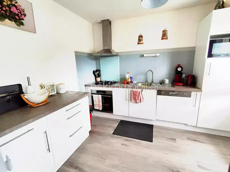 Cette maison de plain pied dispose de 4 chambres, d'un grand espace de vie et d'une cuisine aménagée et équipée et d'une salle d'eau.