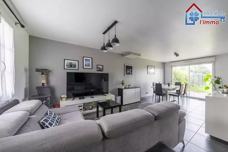 Découvrez cette magnifique maison individuelle, construite en 2012, alliant modernité et confort. Avec ses 104,68 m² de surface habitable et son terrain de 550 m², cette propriété offre un cadre de vie idéal pour les familles.