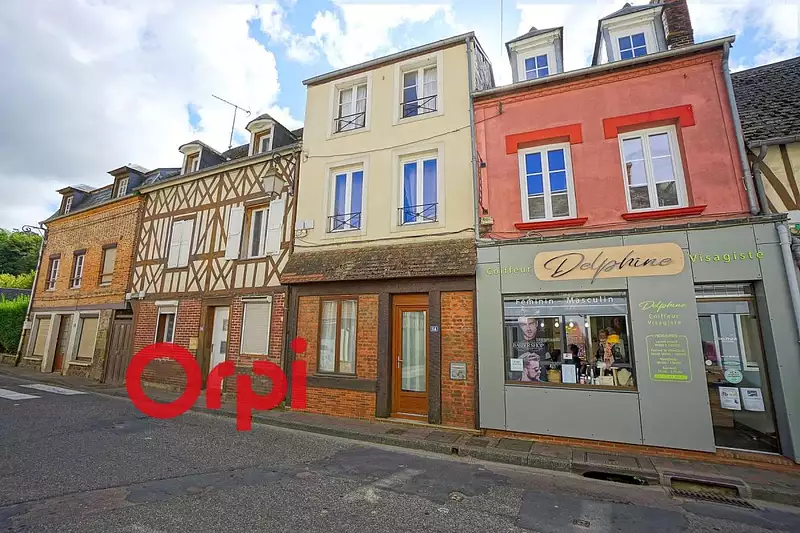 A 10 minutes de BERNAY, maison de ville d'environ 100 m² située en centre-ville de BROGLIE et composée au rez-de-chaussée d'un salon-séjour, cuisine ouverte, toilettes et cellier. Au premier étage : une chambre, salle de bains et un bureau. Au deuxième étage : pièce palière desservant une chambre et un bureau.