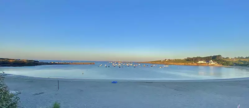 Maison FRONT DE MER au village de Locmaria, comprenant au RDC : entrée/dégagement, séjour salon avec cuisine ouverte aménagée et équipée. A l'étage : pallier, 2 chambres, salle de douches avec wc.