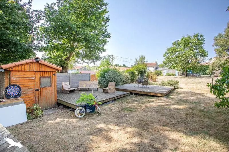 Nichée dans un hameau du Tablier, maison rénovée alliant charme et confort: hall d'entrée, séjour avec cuisine ouverte, salon, 3 chambres donc 1 au RDC, buanderie, dressing, salle d'eau. Un jardin buccolique, véritable havre de paix pour profiter des beaux jours. Une dépendance d'environ 27 m². Cadre agréable et calme garanti...