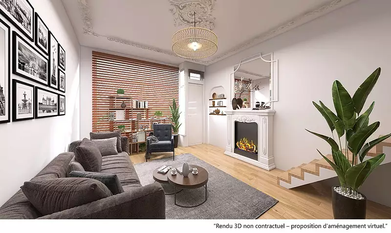 RARE, pour les amoureux des sites classés et des biens atypiques : Maison de ville individuelle avec petite terrasse plein ciel, située au sein d'un passage classé en plein coeur de Paris édifié en 1827, sécurisé avec gardien et vidéo surveillance. Entièrement rénovée en 2021 et a usage exclusif d'habitation, elle comprend : au Rez-de-chaussé un espace aménagé actuellement en bureau avec bibliothèque sur mesures et cheminée. Au premier étage une cuisine ouverte sur salle à manger. Au 2 ème étage, chambre principale placards, salle de douche attenante et toilettes. Au 3ème étage un salon avec mezzanine donne accès à une terrasse plein ciel de 6M2. Un sous-sol aménagé complète ce bien, pouvant servir de salon TV ou salle de sport. Actuellement il comprend également un espace buanderie et des toilettes. Le passage est fermé à partir de 20H00 ainsi que le dimanche et jours fériés. A proximité immédiate de toutes les commodités. Visites faciles. Potentiel et charme. (4.00 % honoraires TTC à la charge de l'acquéreur.)