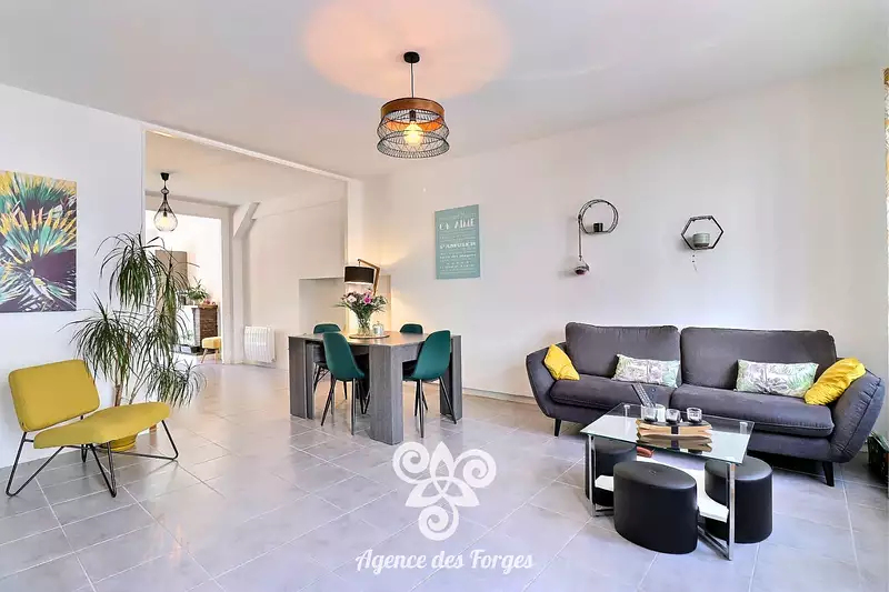 Située en plein bourg de Vallet - à deux pas de toutes commodités - Charmante maison de bourg d'environ 103 m² avec jardinet offrant : - Au rez-de-chaussée : une pièce de vie - une cuisine ouverte aménagée et équipée (four - plaque - hotte - lave vaisselle - réfrigérateur et congélateur) - un petit espace buanderie et un wc indépendant avec lave mains. - A l'étage : un palier - 3 chambres de 11, 12 et 20m² et une salle de bains avec wc (2022). Un grand grenier (à isoler) avec ballon d'eau chaude. - A l'extérieur : une petite cour privée et un abris. Double vitrage - tout à l'égout - chauffage électrique... (5.42 % honoraires TTC à la charge de l'acquéreur.)