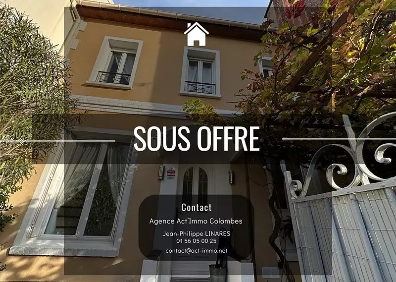 - SOUS OFFRE - L'agence ACT'IMMO vous présente à Colombes en plein coeur du secteur des Vallées, proche des écoles Gustave Bienvêtu (maternelle), Lazare Carnot (Primaire) et Lakanal (collège), de la gare SNCF et des commerces. Dans une petite rue très calme, une charmante maison de 6 pièces offrant, une entrée avec placards, une cuisine aménagée et équipée ouverte sur un double séjour donnant de plein pied sur une terrasse et le jardin, un WC. à l'étage, un palier, 3 belles chambres avec placards, une salle de bains avec WC. Au dernier niveau, une magnifique suite parentale avec une très jolie salle d'eau. Un sous-sol total avec une grande pièces (bureau, salle télé ou autres), une buanderie, une chaufferie (chaudière gaz). Une place de parking. Réf. 2369 Cette jolie maison offre de nombreux atouts: Bon état général, 4 belles chambres, idéalement située, place de parking, proche de toutes commodités... Réf.: 2369 (2.44 % honoraires TTC à la charge de l'acquéreur.)