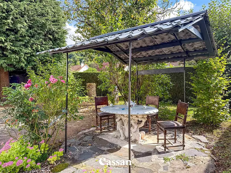 Trois niveaux, quatre chambres dont deux suites parentales avec salle d'eau, une salle de bain supplémentaire, deux espaces terrasse : la généreuse porte bien son nom. A l'extérieur, la végétation est foisonnante. La table aux chérubins bordée de rosiers y ajoute une touche poétique.