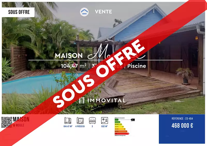 Située dans un secteur calme et recherché de la commune du Moule, votre agence IMMOVITAL vous présente cette villa brésilienne en bois rouge, implantée sur une parcelle clôturée d’environ 932 m2. Elle offre un cadre de vie chaleureux et confortable, à proximité immédiate des commodités essentielles, tout en conservant son intimité.