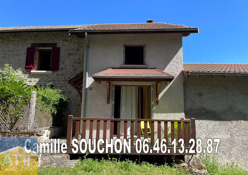 Atif immobilier, Camille SOUCHON vous propose à la vente cette maison élevée sur sous-sol d'environ 104m2 habitable, mitoyenne des deux côtés située dans un petit hameau au calme. Elle offre au rez de chaussée une cuisine équipée ouverte sur salon salle à manger. A l'étage, vous trouverez 2 chambres, une salle d'eau avec douche et baignoire ainsi qu'un wc. Sous-sol complet avec cave. Cheminée bois et radiateurs électriques, tout à l'égout, fenêtres double vitrage.