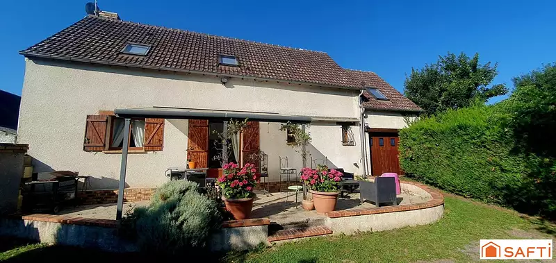 Cette maison de 104 m2 propose des espaces de vie bien agencés, avec un hall d'entrée accueillant, un salon séjour lumineux, une cuisine équipée, 4 chambres confortables ainsi qu'une salle d'eau et de bain.Le rez-de-chaussée comprend également un garage et une cave. Les menuiseries en double vitrage et les revêtements de sol en carrelage et parquet ajoutent du cachet à cette demeure. Avec ses aménagements tels qu'une cuisine équipée, une salle de bain avec baignoire et douche cabine, cette maison offre un cadre de vie fonctionnel et confortable pour une famille désireuse de s'installer dans un lieu tranquille à la campagne.