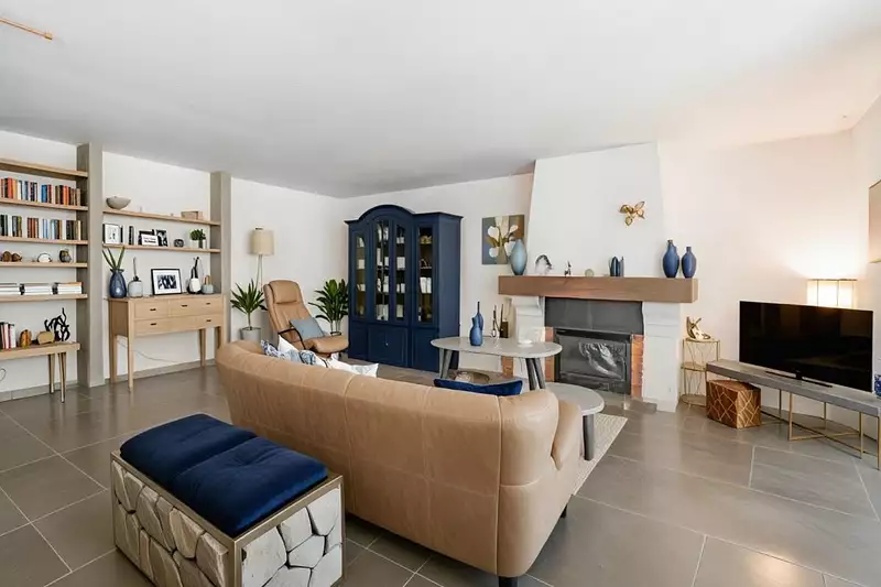 Cette villa de 104 m2 est construite sur un terrain plat arboré de 1 340 m2.