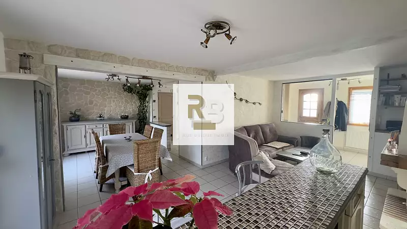 Dès l’entrée, vous serez séduits par son ambiance chaleureuse et son agencement optimisé. La pièce de vie de 50 m2, conviviale et lumineuse, s’ouvre sur une cuisine équipée pratique et agréable pour les repas du quotidien.