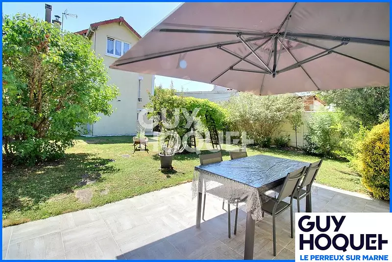 Secteur calme et pavillonnaire proche commerces, maison non mitoyenne, édifiée dans les années 1930, comprenant : - au sous-sol sur terre plein : garage, pièce, buanderie-chaufferie - au RDC surélevé : entrée, séjour double traversant Sud/Nord avec Poêle à bois, salon, cuisine avec verrière, WC, - au 1er étage : palier, 3 chambres, salle d'eau, dressing. Beau jardin paysagé avec 2 terrasses sans vis-à-vis et un abri de jardin. Le tout sur un terrain de 385m². Très bel état général. Vous pouvez poser vos valises !