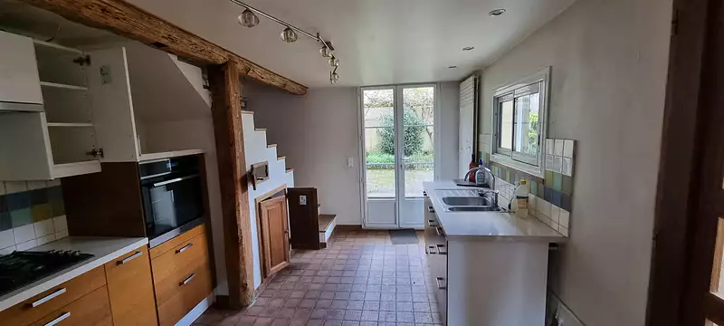Axe Crépy-Compiègne, au coeur de la Vallée de l'Automne, maison ancienne offrant entrée sur salon / séjour avec cheminée à foyer ouvert, cuisine aménagée au RDC. Au 1er, palier / bureau, salle d'eau avec wc et deux chambres. Au 2ème, chambre avec wc et lave main. Cave, garage, terrasse. Le tout sur un terrain de 230 m2.