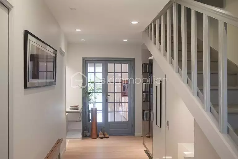 Vaste entrée lumineuse, un double séjour très bien agencé avec sa cheminée insert , le tout dessert une belle terrasse, une cuisine aménagée et équipée, séparée avec une porte qui donne sur la salle à manger.
