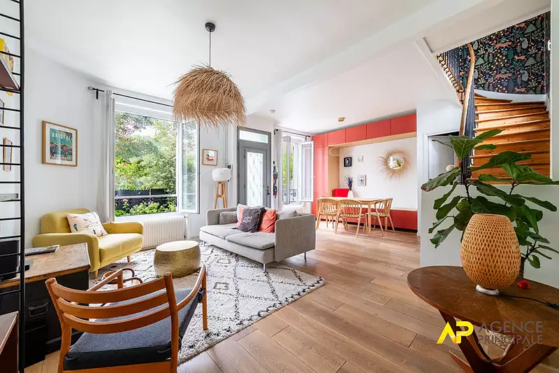 LA GARENNE-COLOMBES : Au fond d'une petite allée verdoyante et discrète, maison 1930 de 118m² habitables (105m² Carrez) hors sous-sol de 30m², édifiée sur une parcelle de 96m² . Jardin avant plein Ouest d'environ 35m². Cette jolie maison entièrement rénovée se situe à proximité des commerces, des transports et des écoles. Elle se compose au rez-de-chaussée d'un double séjour parqueté de 30m² plein ouest, d'une cuisine familiale aménagée, de toilettes séparées; au premier étage : deux chambres et une belle salle de douche avec fenêtre; au deuxième étage : grande chambre en soupente, salle de bains avec toilettes (fenêtre). Un sous-sol total avec chaufferie et espace rangements, salle de jeux/bureau avec un accès direct sur le jardin.