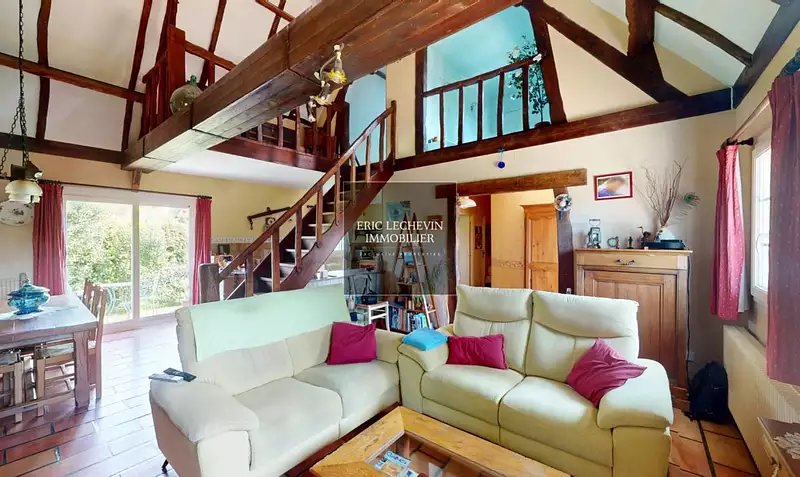 Au rez-de-chaussée : Une entrée, une grande pièce de vie ouverte avec séjour cathédrale comprenant Salon - Salle à manger - Cuisine aménagée et équipée, une chambre, une salle de bains avec wc indépendant.