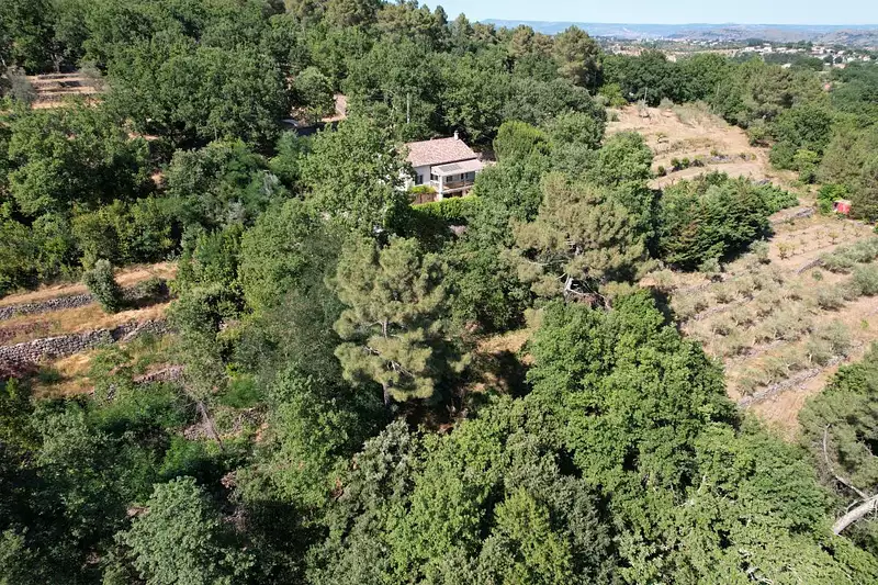 Le terrain, en larges terrasses exploitables, offre un cadre naturel préservé avec une belle végétation descendant jusqu'à un ruisseau.